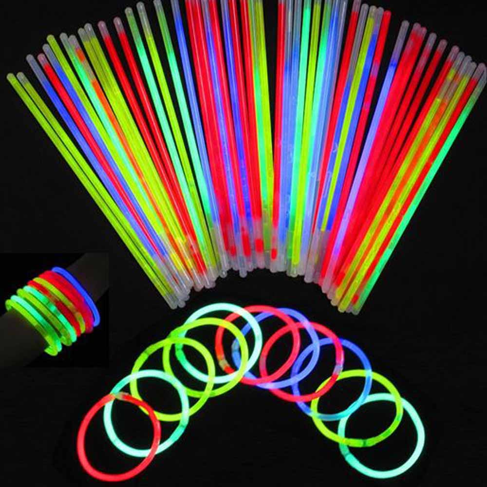Náramek - lámací 20cm 100ks .riginální svítící párty náramky rozzáří a vkusně ozdobí každou pořádnou oslavu. Je to plastový náramek, který se spojí spojkou. Má v sobě chemikálie které spojením vytvoří studené světlo po dobu 4–8 hodin. Náramek se aktivuje polámáním po celé délce náramku a tím ke sloučení chemikálií. Poté se náramek rozsvítí. Doba svícení je asi 4–6 hod – dobu svícení lze prodloužit schlazením náramku v lednici. Párty náramky jsou baleny po 100 kusech. UPOZORNĚNÍ Nevhodné pro děti do 3 let. Používat pouze pod dohledem dospělé osoby.