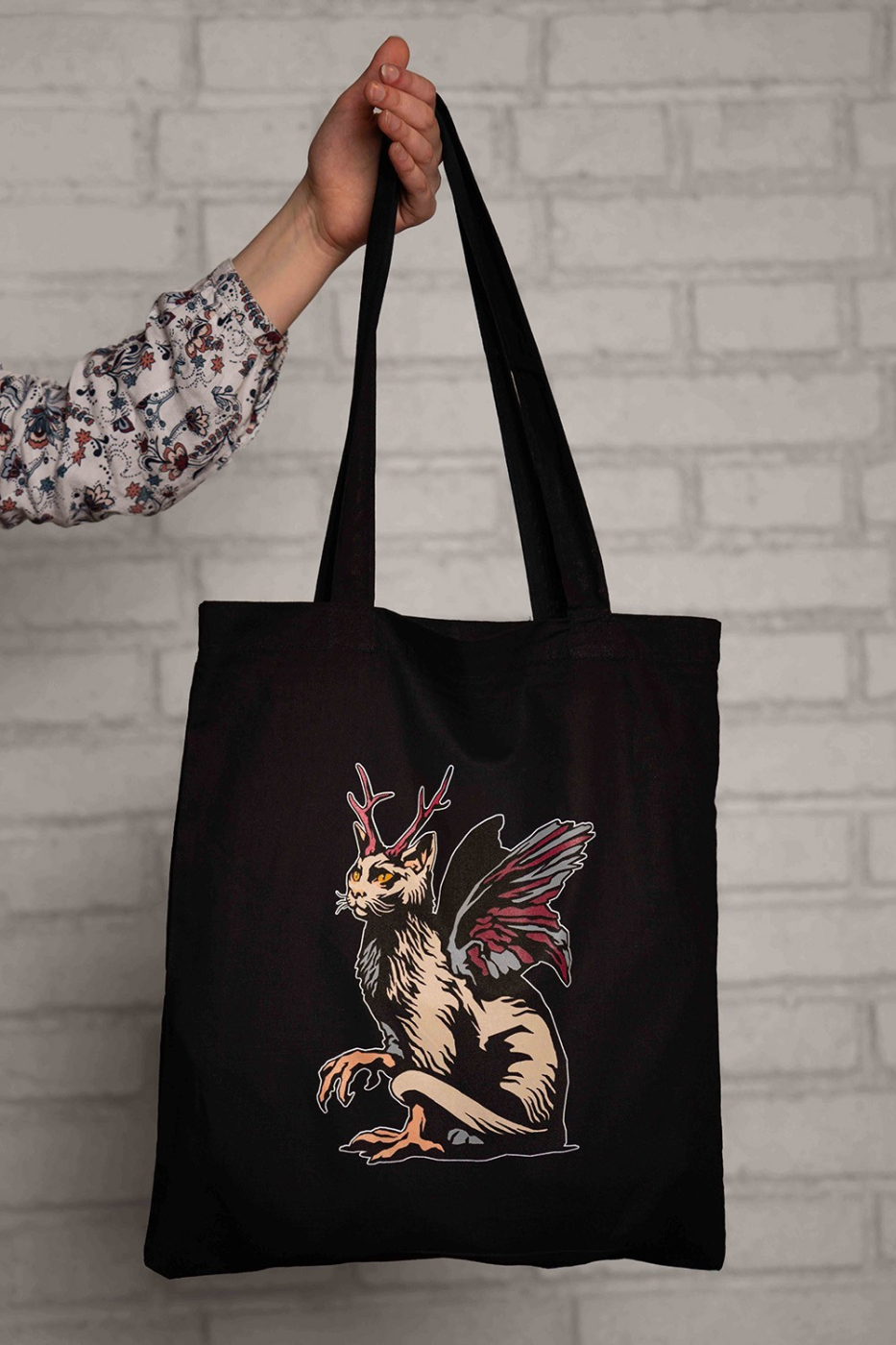 100% bavlněná látková taška 38x42 cm, dlouhá ucha, křížové prošití, 140g/m2, s originálním potiskem. Je skladná a oproti igelitovým taškám šetrná k přírodě. * Barva: Černá * Ilustration by Yeronym Art&Ilustration
