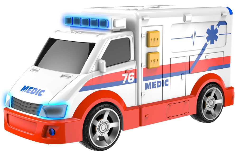 Sanitka záchranné služby Teamsterz s realistickými zvuky a světlem. Vyžaduje 3×LR44 baterie (zahrnuty v balení).