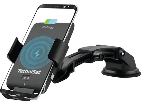 TechniSat Smartcharge 1 Nabíjecí držák telefonu do auta černá / 65-100 mm / do mřížky / na sklo / Qi / USB-C / 10W (V058F)