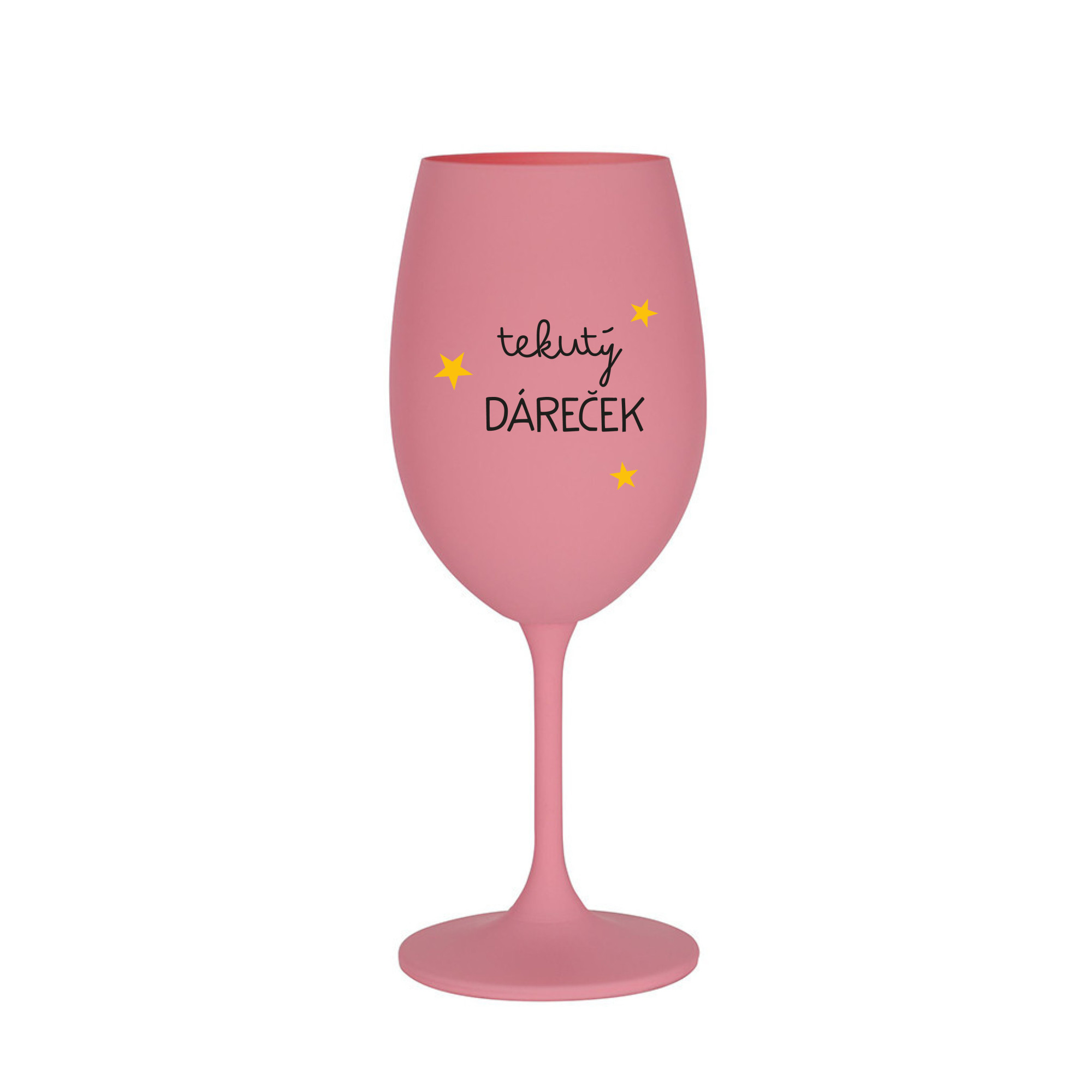 Vinná růžová sklenice s originálním motivem TEKUTÝ DÁREČEK je krásným a osobitým dárkem, které ale využijete i Vy sami třeba ve chvílích, kdy si budete chtít zpříjemnit náročný den. Tyto originální vinné sklenice jsou totiž nejen pro výjimečné události, ale i pro běžné večery, které si chcete zpříjemnit sklenkou dobrého vína. Jistě proto potěší každého milovníka vína, i toho, kdo si umí svůj život vychutnat plnými doušky. Materiál sklo. Vyrobené s láskou v ČR