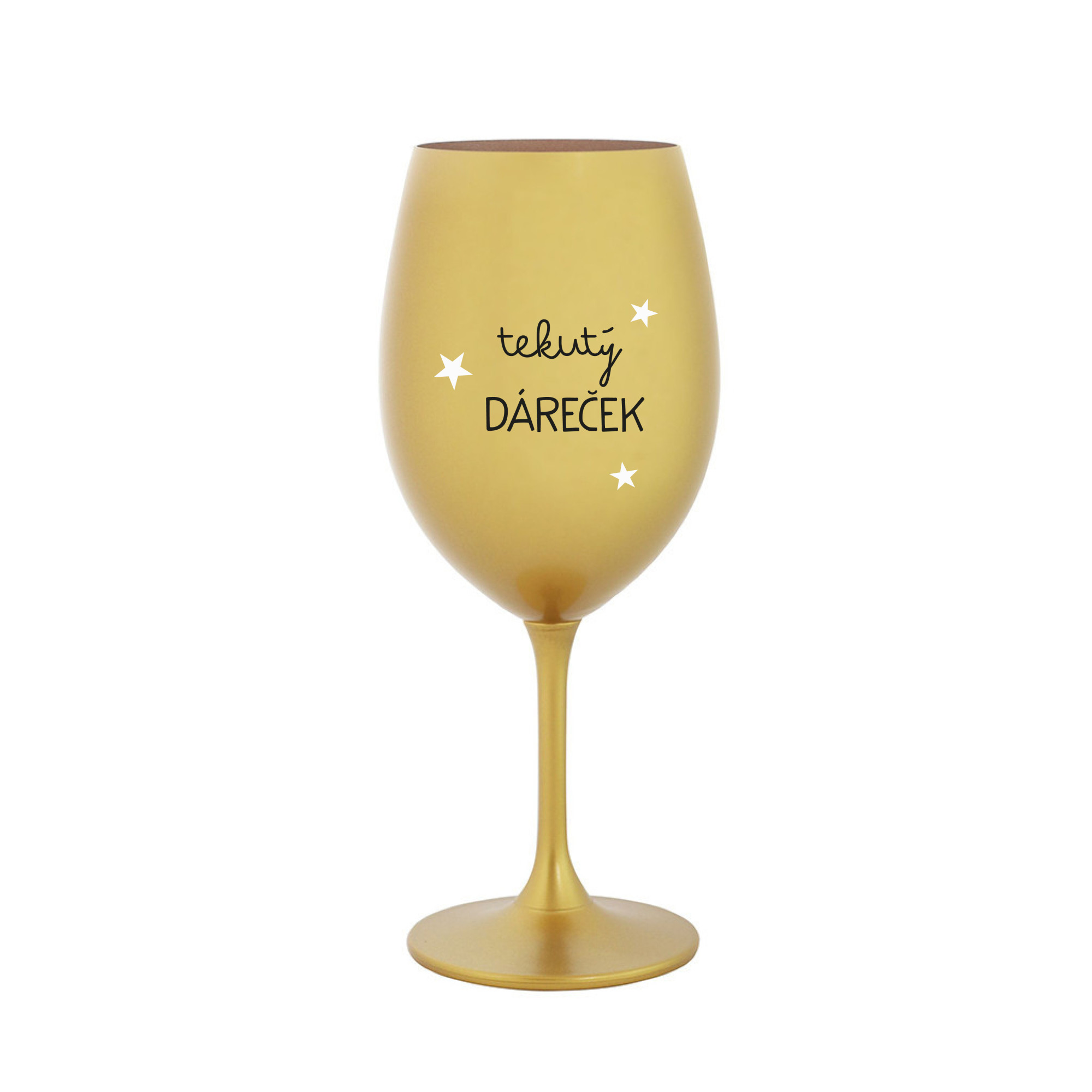 Vinná zlatá sklenice s originálním motivem TEKUTÝ DÁREČEK je krásným a osobitým dárkem, které ale využijete i Vy sami třeba ve chvílích, kdy si budete chtít zpříjemnit náročný den. Tyto originální vinné sklenice jsou totiž nejen pro výjimečné události, ale i pro běžné večery, které si chcete zpříjemnit sklenkou dobrého vína. Jistě proto potěší každého milovníka vína, i toho, kdo si umí svůj život vychutnat plnými doušky. Materiál sklo. Vyrobené s láskou v ČR