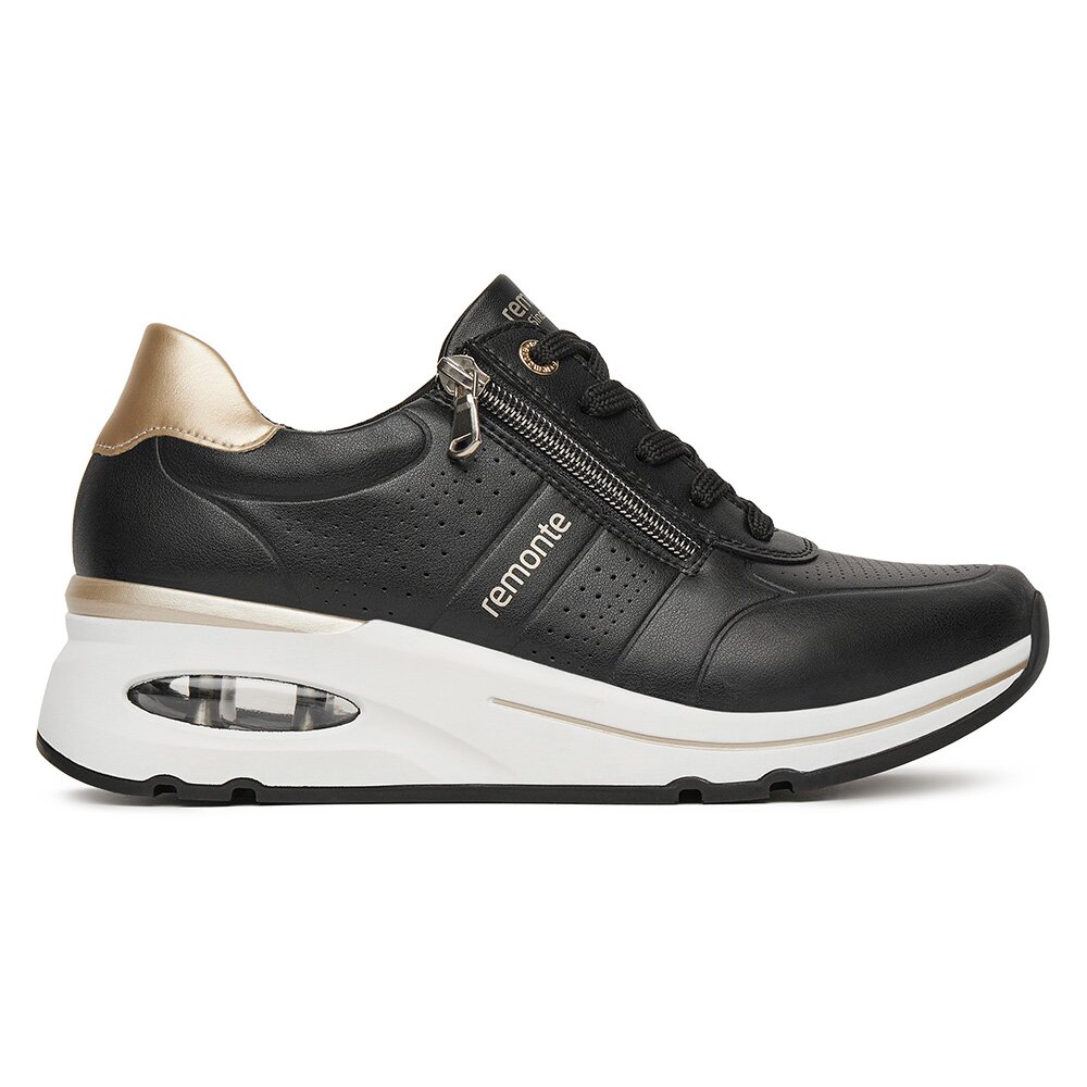 Tenisky ČERNÁ Přírodní kůže pokrytá syntetickým materiálem,Syntetický materiál REMONTE D2H01-03 CZARNY Remonte Dámské/Obuv/Tenisky