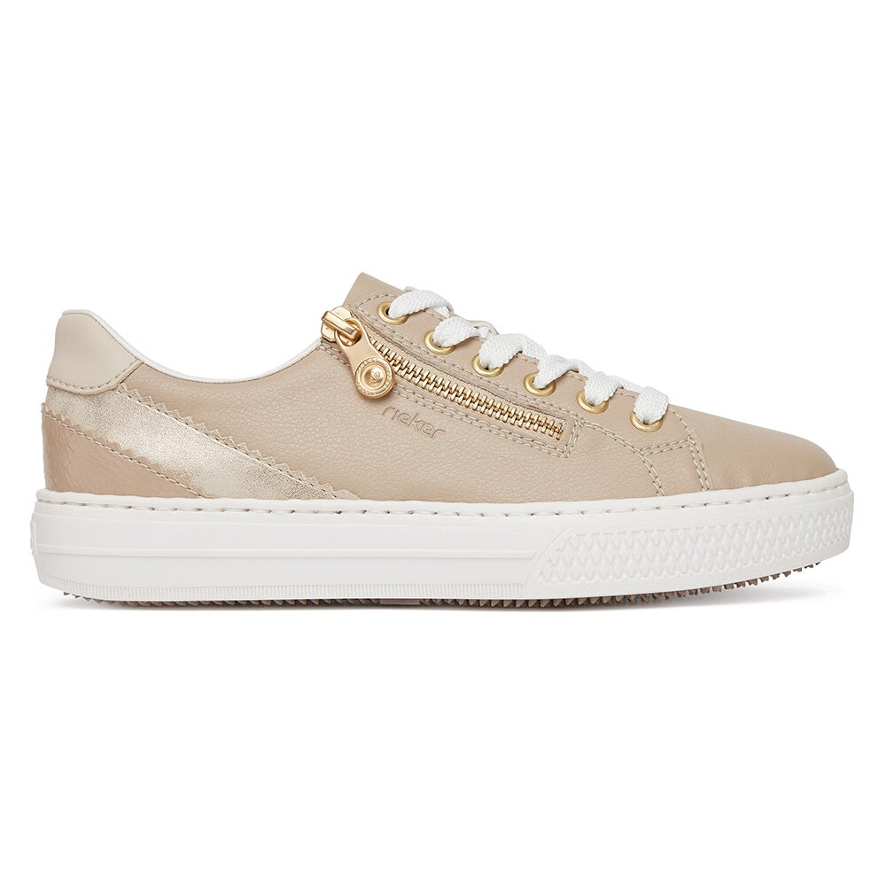 Tenisky BÉŽOVÁ Přírodní kůže (useň) - Lícová RIEKER L5900-62 BEŻOWY Rieker Dámské/Obuv/Tenisky