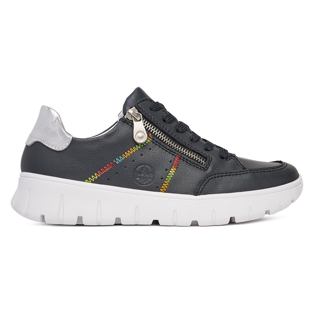 Tenisky TMAVĚ MODRÁ Přírodní kůže (useň) - Lícová RIEKER N1313-14 GRANATOWY CIEMNY Rieker Dámské/Obuv/Tenisky
