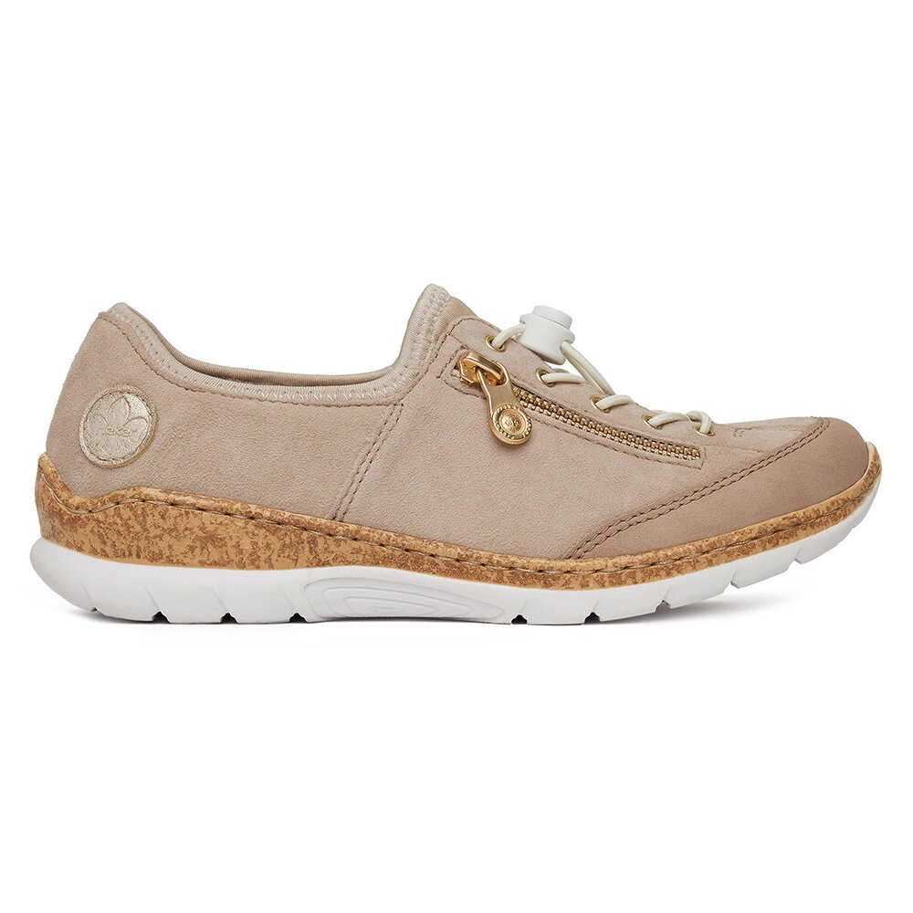 Tenisky SVĚTLE BÉŽOVÁ Látkový materiál,Přírodní kůže (useň) - Semiš RIEKER N42F1-60 Beżowy Jasny Rieker Dámské/Obuv/Tenisky