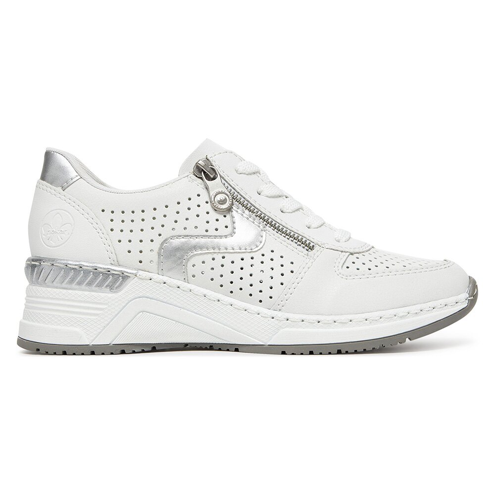 Tenisky BÍLÁ Přírodní kůže pokrytá syntetickým materiálem,Syntetický materiál RIEKER N4340-80 Biały Rieker Dámské/Obuv/Tenisky