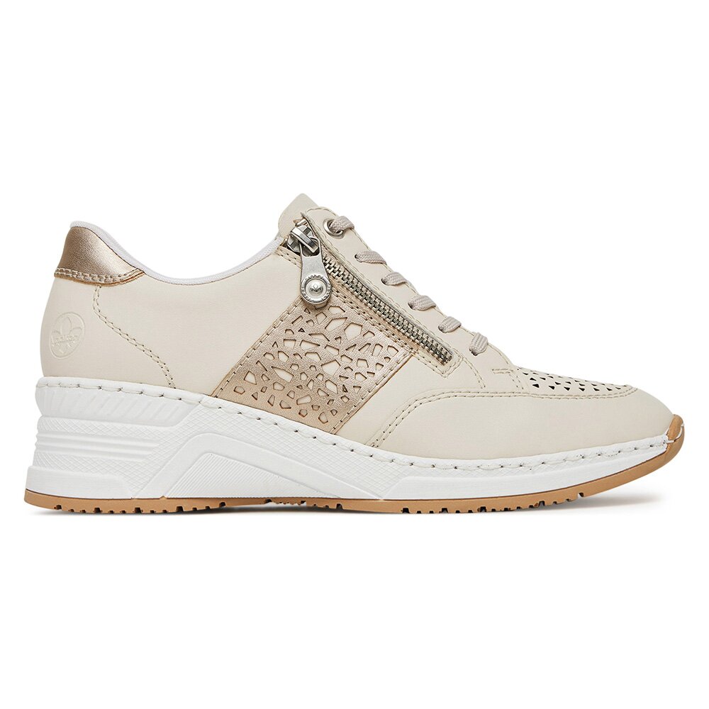 Tenisky SVĚTLE BÉŽOVÁ Přírodní kůže pokrytá syntetickým materiálem RIEKER N4344-60 Beżowy Jasny Rieker Dámské/Obuv/Tenisky