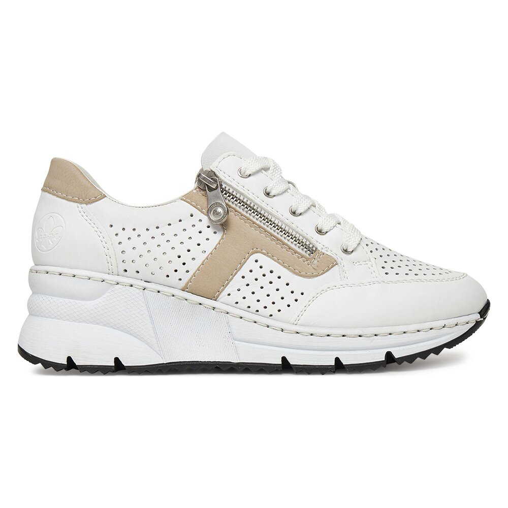 Tenisky BÍLÁ Syntetická tkanina,Přírodní kůže (useň) - Lícová RIEKER N6304-80 Biały Rieker Dámské/Obuv/Tenisky