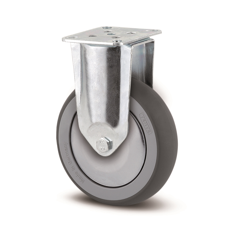 Technické údaje Průměr kolečka 100 mm Šířka běhounu 32 mm Velikost plotny 77 x 67 mm Rozteč děr 61,5/56 x 51,5/46,5 mm Průměr děr 8,5 mm Stavební výška 135 mm Teplota - 20 / + 60 °C Standard EN 12530 Hmotnost 0.531 kg Tvrdost běhounu Shore A 87 Dynamická nosnost 100 kg Statická nosnost 200 kg
