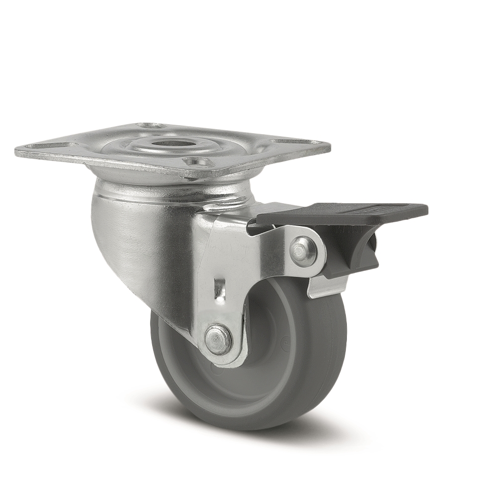 Technické údaje Průměr kolečka 50 mm Šířka běhounu 19 mm Velikost plotny 60 x 60 mm Rozteč děr 48/38 x 48/38 mm Průměr děr 6,3 mm Vyosení 24 mm Stavební výška 69 mm Teplota - 20 / + 60 °C Standard EN 12530 Hmotnost 0.2 kg Tvrdost běhounu Shore A 87 Dynamická nosnost 40 kg Statická nosnost 80 kg