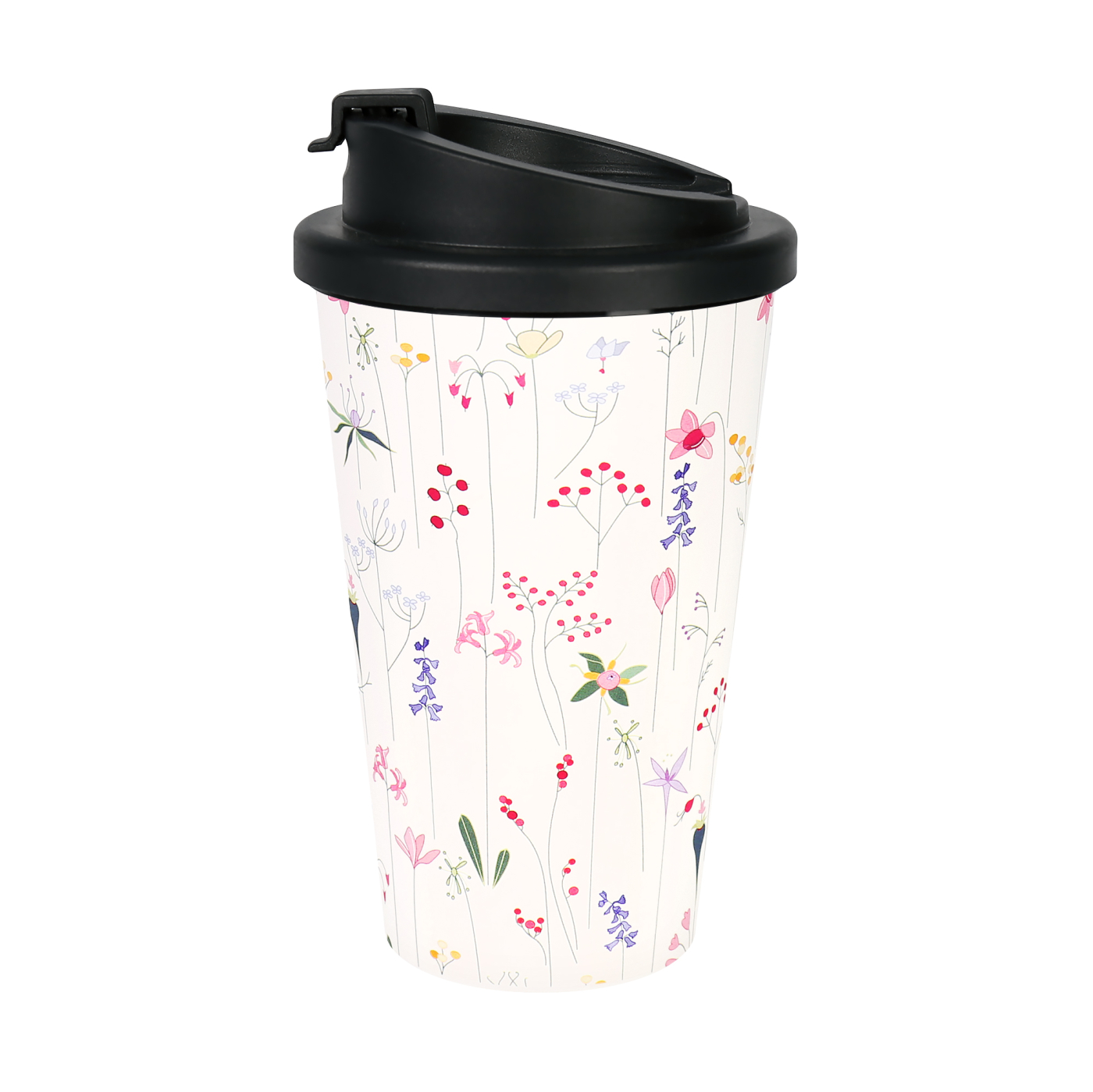 Termohrnky se zavíracím pítkem v květinových motivech jsou ideální na cesty do školy či do práce.Objem: 350 ml
