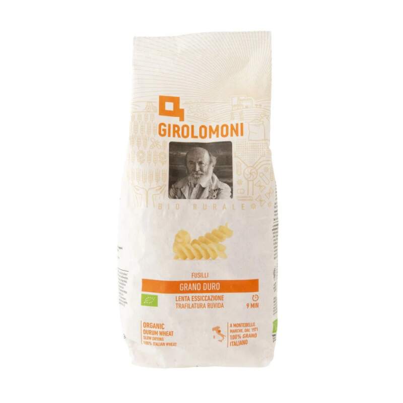 Těstoviny fusilli semolinové 500 g Vynikající italské těstoviny ze semoliny, tvrdozrnné pšenice. Všechny produkty Girolomoni jsou vyrobené výhradně ze surovin pěstovaných ekologicky. Těstoviny se pak pomalu suší, aby se zachovaly jejich nutriční hodnoty, chuť a vůně. Složení Tvrdozrnná PŠENIČNÁ krupice*. Může obsahovat stopy sóji a hořčice. *produkt kontrolovaného ekologického zemědělství Alergeny Lepek Skladování Uchovávejte na suchém místě. Výživové údaje na 100 g Energetická hodnota 1 518 kJ / 358 kcal Tuky: 1,6 g z toho nasycené mastné kyseliny: 0,4 g Sacharidy: 73,2 g z toho cukry: 3,0 g Vláknina: 3,4 g Bílkoviny: 11,0 g Sůl: 0,01 g
