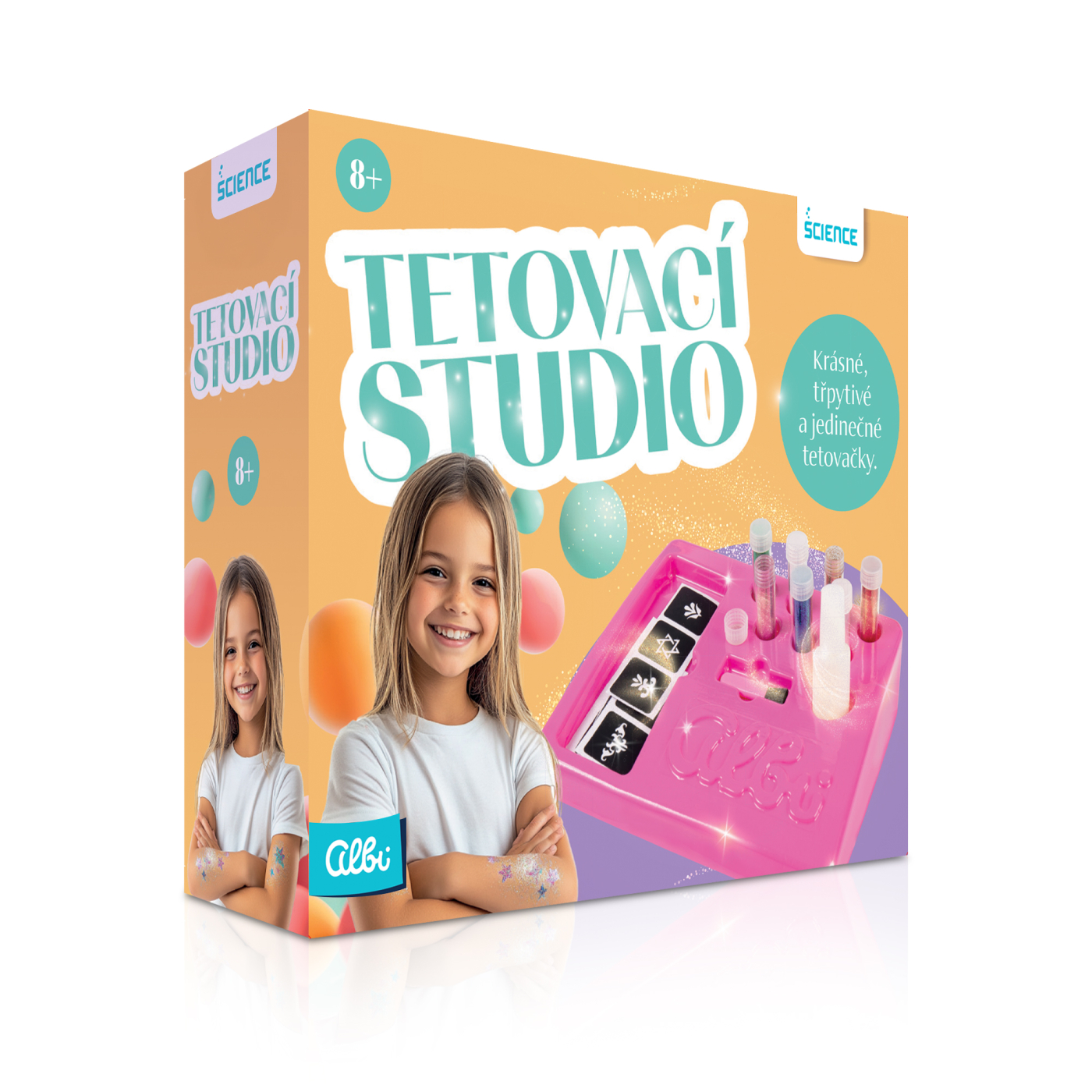 Kreativní dětská sad na výrobu třpytivých tetování. Sada obsahuje: červené bio třpytky – 1 lahvičku, modré bio třpytky – 1 lahvičku, růžové bio třpytky – 1 lahvičku, zlaté bio třpytky – 1 lahvičku, fialové bio třpytky – 1 lahvičku, zelené bio třpytky – 1 lahvičku, lepidlo se štětečkem – 1 lahvičku, štěteček pro aplikaci třpytek, lepící šablony pro tetování – 30 ks a návod.