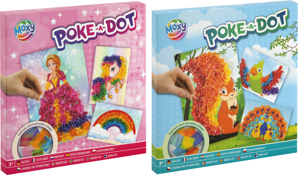 Textilní malování – dva druhy – veverka, papoušek a páv/ jednorožec, duha a princezna. Jednoduché malování s textilem dle předlohy. Do pěnové podložky s předtištěným obrázkem zastrukujete pomocí aplikátoru látku, která poté vytvoří obrázek. Součástí balení je pěnová podložky, aplikátor, různě barevné látky a 3 obrázky. Velikost obrázku je 21×14,5 cm.