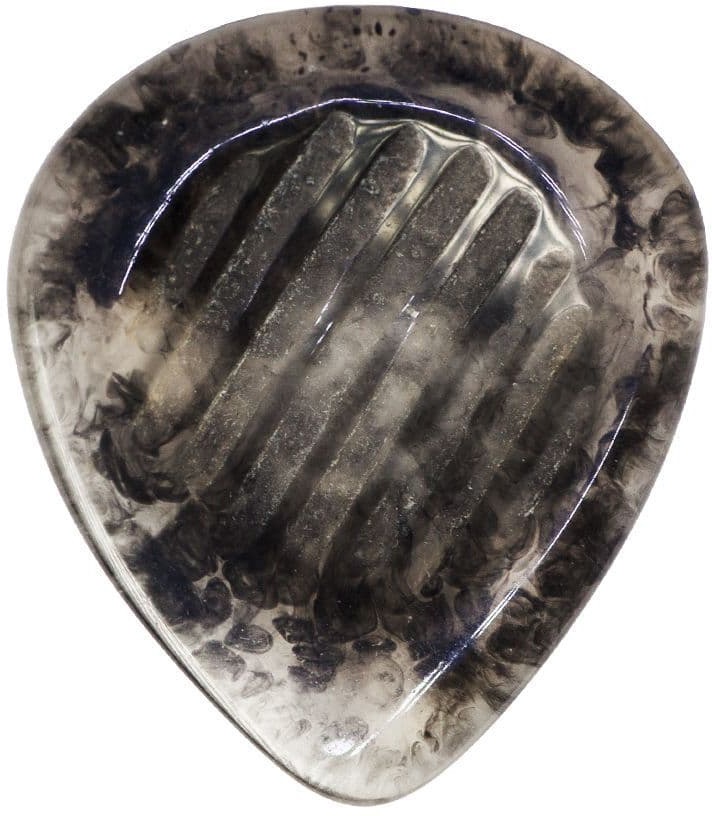 Trsátko Jedno trsátko z kvalitní pryskyřice s protiskluzovým gripem. Design tohoto modelu je inspirovaný písní Smoke on the Water. Ať už hledáte dárek pro nadšeného kytaristu nebo se jen pídíte po dokonalém zvuku a toužíte vyzkoušet trsátka z netradičních materiálů, u Timber Tones zajisté najdete, co potřebujete. Trsátka ze série Resin Tones Grip jsou vyrobena z té nejkvalitnější přírodní pryskyřice, která je středně tvrdá, velmi odolná a zvuku kytary dodává vřelý a zakulac