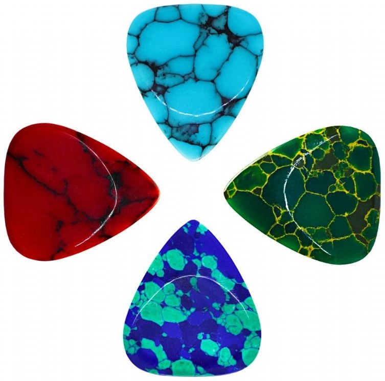Trsátka Sada čtyř kamenných trsátek ze série Stone Tones vhodná zejména pro elektrické a lubové kytary. Ať už hledáte dárek pro nadšeného kytaristu nebo se jen pídíte po dokonalém zvuku a toužíte vyzkoušet trsátka z netradičních materiálů, u Timber Tones zajisté najdete, co potřebujete. Trsátka ze série Stone Tones jsou vyrobena z kamene s příměsí pryskyřice. Díky tvrdému kamennému materiálu mají průrazný čistý tón, avšak pryskyřice jim dodává špetku vřelos