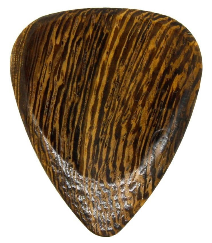 Trsátko Ať už hledáte dárek pro nadšeného kytaristu nebo se jen pídíte po dokonalém zvuku a toužíte vyzkoušet trsátka z netradičních materiálů, u Timber Tones zajisté najdete, co potřebujete. Tento model je vyroben ze středně tvrdé dřeviny Thai Cassia, která produkuje vyvážený, frekvenčně neutrální tón. Má tloušťku 2,4 mm, která se směrem ke hrotu zužuje na 0,7 mm. Trsátko je ručně broušené a lakované. Britská společnost Timber Tones se na výrobu trsátek sp