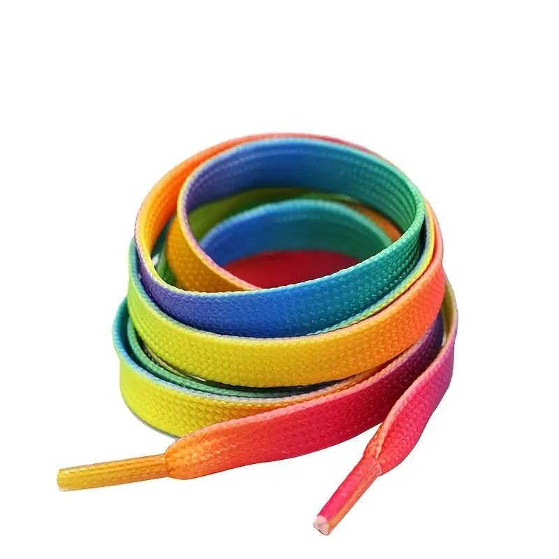 Oživte svůj outfit těmito barevnými širokými tkaničkami v duhovém provedení!