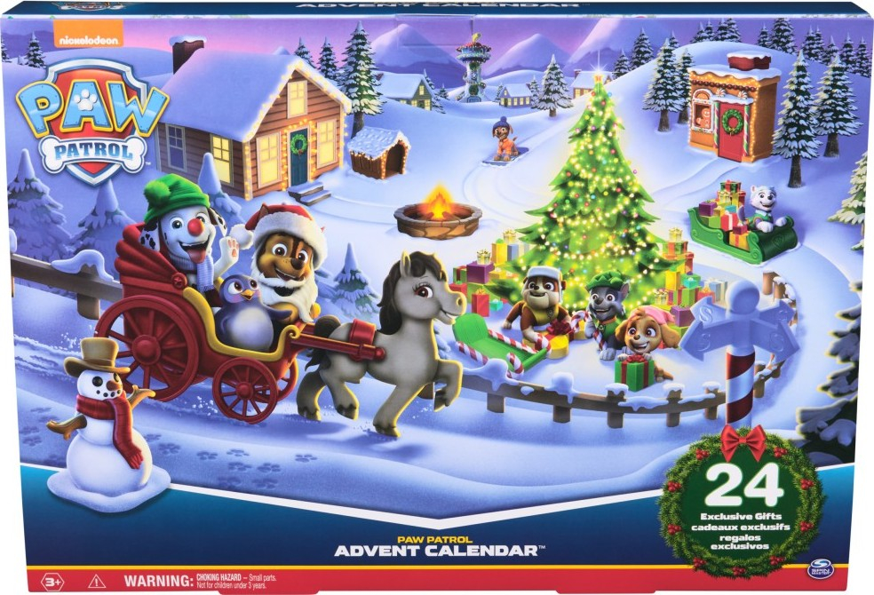 Odpočítávejte dny do Vánoc s adventním kalendářem Tlapkové patroly! V této vánoční dárkové sadě děti každý den objeví jiný vánoční dárek s tematikou Tlapkové patroly! Kalendář obsahuje 24 dárků a za každými dvířky vždy čeká nové překvapení. Děti si otevřou své oblíbené tlapky, jako je Santa Chase, Rudolf Marshall, Skye, Rubble, Everest, Rocky a Zuma, všechny řádně vystrojené na svátky, tučňáka, sněhuláka, kočár tažený koňmi a Chickalettu s čepicí! Dodává se také s roztomilými doplňky, jako jsou snowboardy, perníkové pamlsky pro psy, ohniště, výloha obchodu a další! Až otevřou všech 24 dárků, mohou děti zapojit svou představivost, užít si sněhové radovánky v Adventure Bay a vyslat tlapky a jejich přátele na vzrušující vánoční mise! Oslavte svátky s adventním kalendářem Tlapkové patroly! Hračky s tematikou Tlapkové patroly pro chlapce a dívky podporují nápaditou hru a zlepšují jemnou motoriku, proto jsou skvělými dárky pro všechny fanoušky pořadu. Hrdinové z Tlapkové patroly a jejich autíčka vám umožní znovu prožít vaše oblíbené okamžiky z různých dobrodružství Tlapkové patroly, jako jsou Mocná štěňata a Tlapková patrola ve filmu, nebo se vydat na zcela nová dobrodružství (prodávají se zvlášť). Užijte si dlouhé hodiny zábavy a vydejte se na dobrodružství inspirované seriálem Tlapková patrola s celým týmem záchranářů, který obsahuje autíčka Tlapkové patroly, akční figurky a zcela nové velitelství v podobě Tlapkové věže.