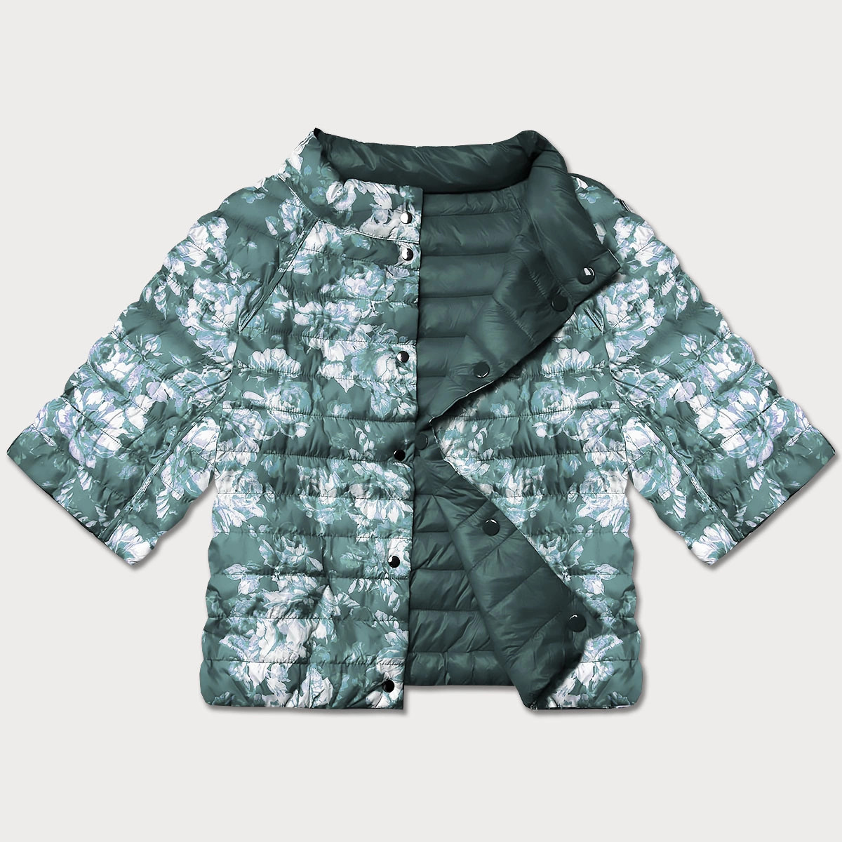 Tmavě mátová/květovaná oboustranná dámská plus size bunda se 3/4 rukávy Minority (M23-7010-253) odstíny zelené 52