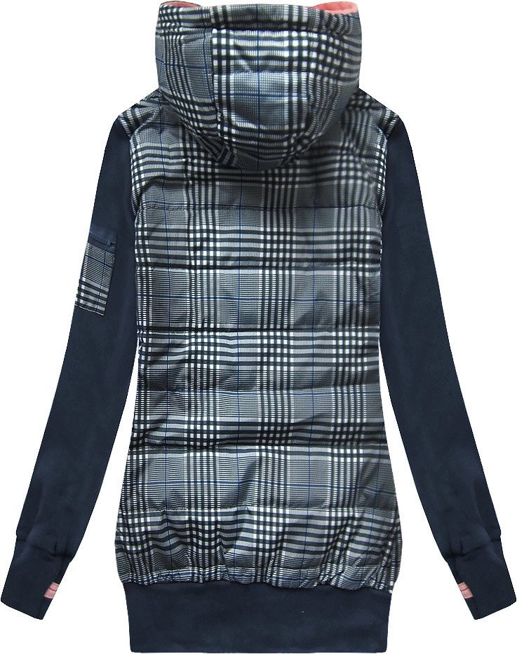 Věnujte prosím pozornost při výběru velikosti dle velikostní tabulky uvedené níže. Velikosti neodpovídají běžně nošené konfekci. Delší mikina z různých spojených materiálů Mikinu zdobí károvaný vzor, má dvě kapsy se zapínáním na patentku a jednu kapsu na levém rameni se zapínáním na zip a zapíná se asymetrickým zipem. Model má kapuci s ozdobnými šňůrkami. Kapuci není možné odepnout. Rukávy a spodní okraj modelu jsou olemované stahovacími lemy. Ve stahovacích lemech na rukávech je otvor na palec. Mikina je vyrobená z velmi kvalitního materiálu, je pohodlná, dobře se nosí a vypadá skvěle. Složení: 65 % bavlna, 35 % polyester.