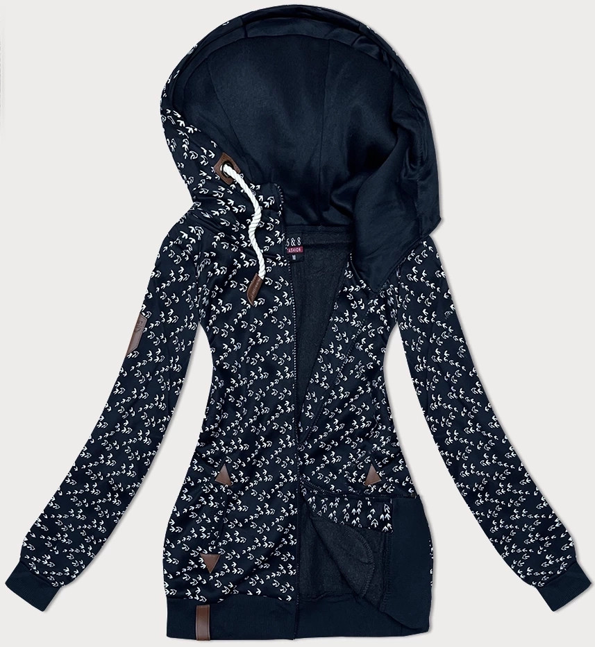 Domů Oblečení a móda Dámské oblečení Dámské mikiny Tmavě modrá sportovní mikina s kapucí a se vzorem vlaštovek (2309) odstíny modré 46