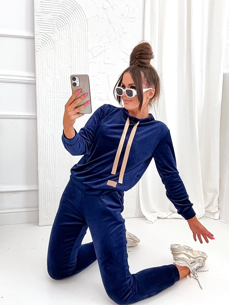 Tmavě modrý dámský velurový komplet (637) odstíny modré L (40)