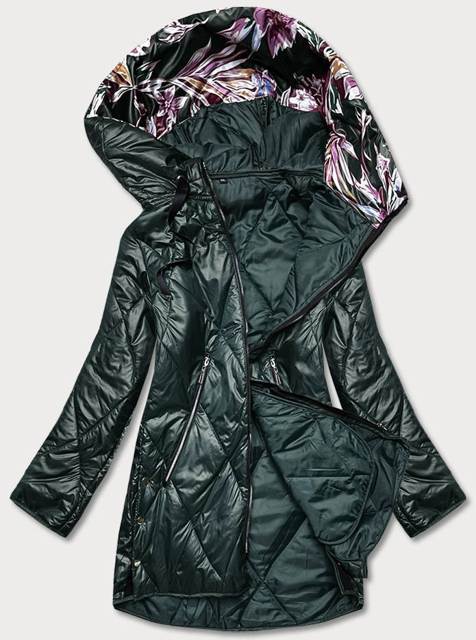 Tmavě zelená dámská bunda s ozdobnou kapucí (B8126-10) odstíny zelené 52
