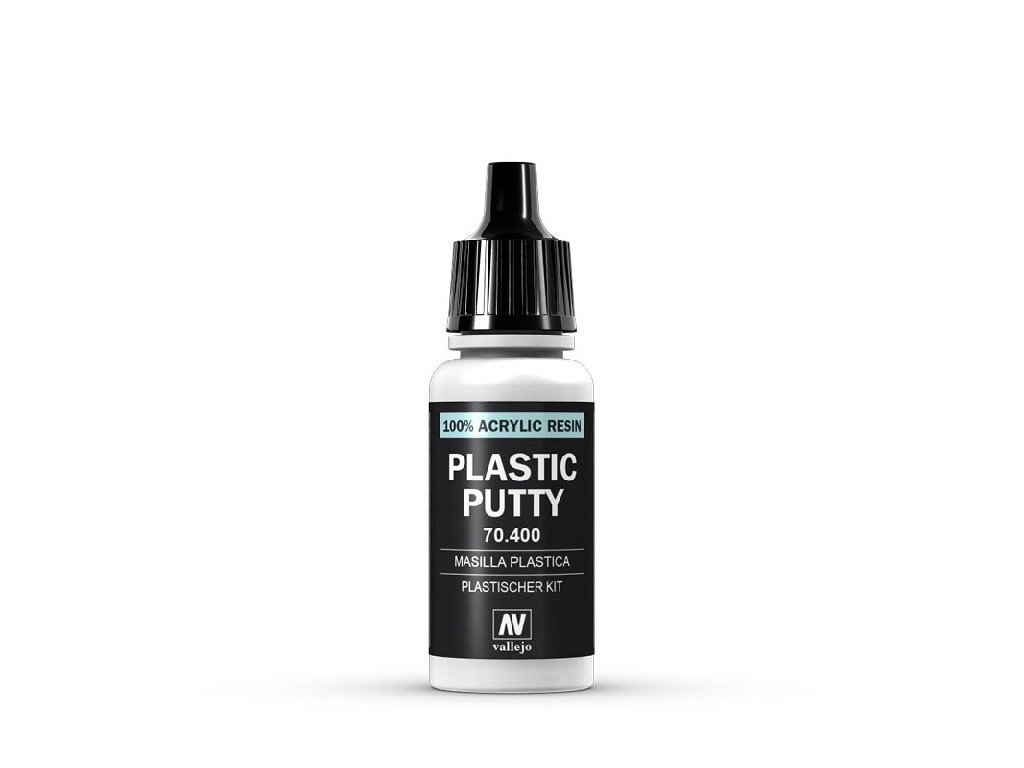 Vallejo 70400 Plastic Putty je modelářský tmel obsahující mramorový prášek, který po zaschnutí vytváří bílý, zcela neprůhledný a tvrdý povrch. Tento tmel je ideální pro opravy a obnovu modelů, tvorbu reliéfů a dekoraci povrchů. Díky své konzistenci umožňuje vytvářet a opravovat detaily na modelech a miniaturách. Tento tmel je vhodný pro práci s různými materiály, jako jsou plasty, dřevo či kov, a je oblíbený mezi modeláři pro svou snadnou aplikaci a kvalitní výsledky. Hlavní vlastnosti: Barva: Bílá Konzistence: Obsahuje mramorový prášek pro pevný a neprůhledný povrch Použití: Opravy modelů, tvorba reliéfů, dekorace povrchů Balení: Dostupné v lahvičkách o objemu 17 ml Použití: Tmel se nanáší na požadovaná místa pomocí špachtle nebo jiného vhodného nástroje. Po zaschnutí lze povrch brousit a dále upravovat podle potřeby.