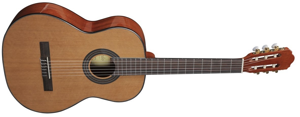 Klasická kytara Klasická kytara Toledo Estudio Solida 44CG je cenově dostupný nástroj s polomasivní konstrukcí vhodný pro začínající i zkušenější hráče. Nabízí přední desku z masivu cedru, zadní desku a luby z vrstveného mahagonu, krk z okoumé a palisandrový hmatník a kobylku. Struny jsou uchyceny v klasických otevřených ladicích mechanikách s kolíčky z imitace perleti. Stylové zpracování podtrhuje černá obvodová lemovka doplněná černobílými linkami, dekorativní rozeta a lesklý finiš.