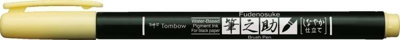 Fix Fudenosuke (brush pen) s elastickým štětcovým hrotem (typu soft) vhodný pro psaní na černý či jiný tmavý odstín papíru. „Kouzelný“ pigmentový inkoust na bázi vody: barva se objeví až pár vteřin po jejím nanesení na tmavý papír. Vrstvením inkoustu lze vytvořit intenzivnější barvy. Skvěle se hodí pro kombinování různých pomůcek, technik a materiálů, tedy mixed média. Krásně se doplňuje s pastelkami IROJITEN, fixy ABT PRO a ostatními fixy Fudenosuke. Fixy lze používat i pro psaní na bílém papíře (výsledek vypadá jinak než na tmavém papíře). Skladujte ve vodorovné poloze. Barva inkoustu: pastelově žlutá