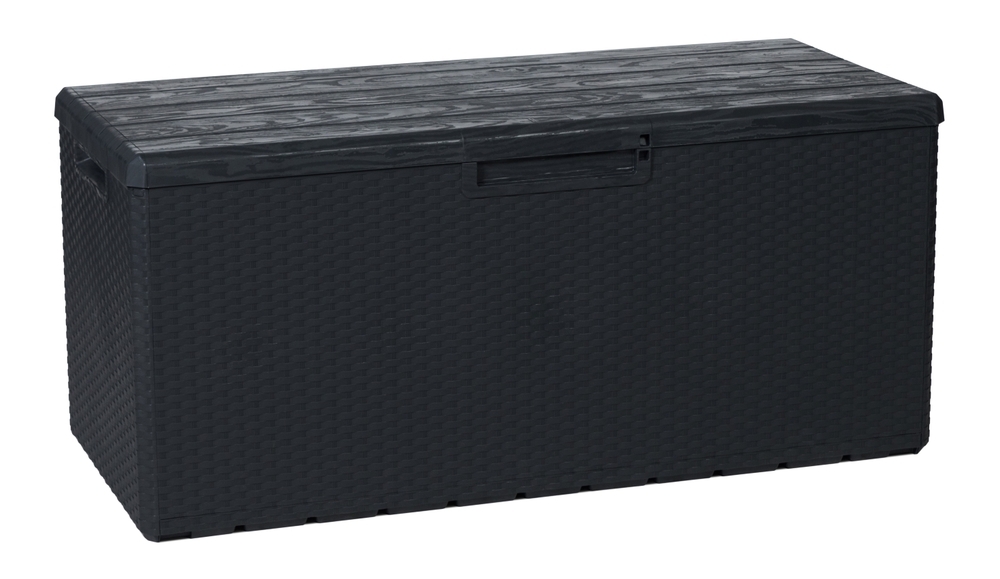 Imitace ratanového povrchu na bočních stěnách a dřevěného na víku dodává PORTOFINO 340 l luxusní vzhled, který se bude skvěle hodit k jakémukoli zahradnímu designu. Jeho grafitová barva je vkusná a neutrální, takže se dokonale sladí s okolím. Tento box má také možnost uzamčení, což zajišťuje bezpečné uložení Vašich cenností a nábytku.