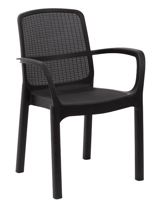 Grafitové provedení křesla SIROLO je univerzální a skvěle doplní mnohé stoly či sestavy v této barvě, což Vám umožní vytvořit elegantní a vkusné venkovní prostředí.