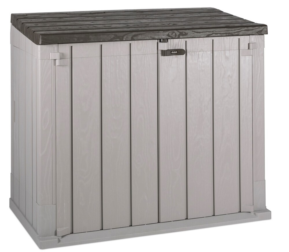 Výhody tohoto skvostu jsou zřejmé: dvoukřídlé dveře a otevírací víko nabízí mnoho možností využití. Bez námahy a s elegancí zvládnete přístup i manipulaci s obsahem. Šikmý práh dále usnadňuje přístup dovnitř, umožňuje snadné umístění popelnic či jiných objemných předmětů. Zajímavé barevné provedení kombinuje béžové stěny a hnědé víko.