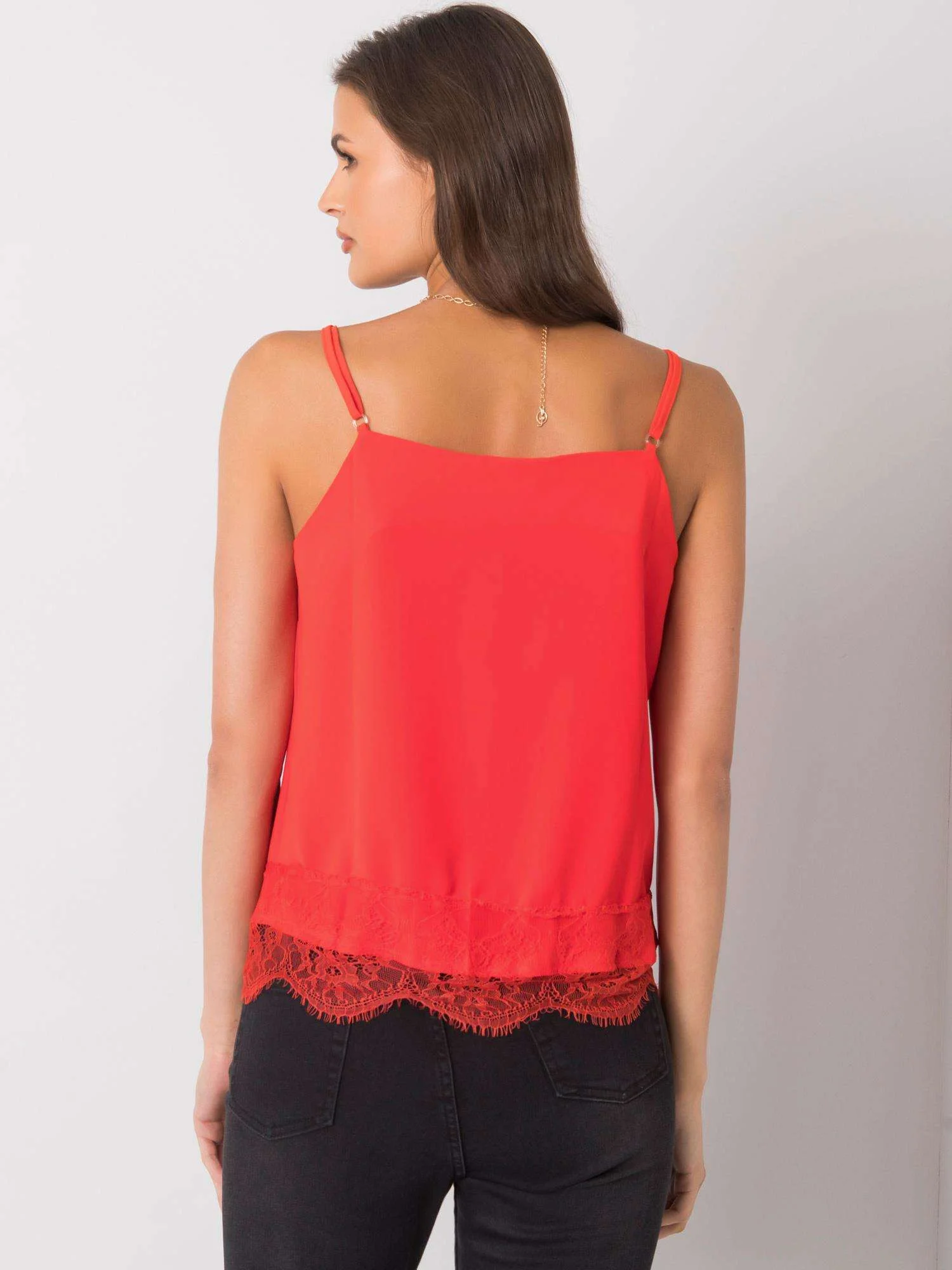 Červený top s knoflíky. příslušenství: nastavitelná ramínka, zapínání na knoflíky složení látky: 60 % bavlna, 37 % polyamid, 3 % elastan způsob praní: praní v pračce na 30 °C Modelka má na sobě velikost S. Rozměry modelky: výška 176,5 cm, prsa 83 cm, pas 55 cm, boky 88 cm. Rozměry topu ve velikosti S měřené na plocho: šířka pod průramky - 44 cm, celková délka - 58 cm