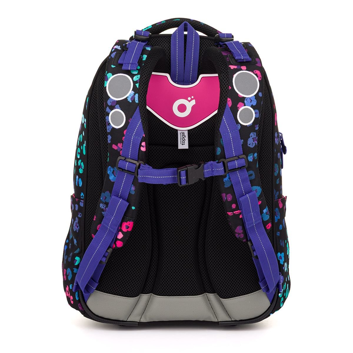Model LORI je mezi našimi batohy jedničkou v objemu – 27 litrů pojme vše potřebné od 3. až do 6. třídy ZŠ. V motivu zářícího leoparda si ho oblíbí děti, které mají rády originální a odvážný styl. Zadní komora je vybavena praktickým organizérem na učebnice a sešity. Přední komora poslouží na penál, svačinový box nebo jiné drobnosti. Uvnitř nechybí síťovaná kapsa na zip a jmenovka. Po stranách batohu najdete dvě kapsy na pití – perfektně sedí například na lahev ZIVA. Hlavní charakteristika: váží lehce přes 1 kg 27 litrů objemu – využití až do 6. třídy ZŠ dvě prostorné komory a hluboká přední kapsa pevná, anatomicky tvarovaná záda s hliníkovou výztuhou reflexní prvky ze všech stran batohu magnetky na koncích ramenních popruhů pevné dno z materiálu TOPDURA s plastovými nožičkami příprava pro bederní pás TOP 24021 a TOP 24022 poutko na zavěšení batohu na lavici výškově nastavitelná hrudní přezka odnímatelná karabina na klíče nastavitelné ramenní popruhy PU zátěr proti dešti batoh testován v ITC Zlín