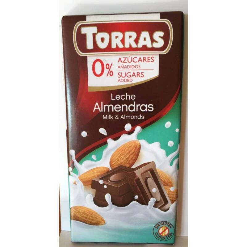 Mléčná čokoláda s mandlemi 75g Mléčná čokoláda s mandlemi: bez lepku bez přidaného cukru bez ztužených tuků vhodné pro diabetiky Složení: Kakaová hmota, sladidlo ze škrobu (maltitol), mléko v prášku 14 % kakaové máslo, inulin, mandle 12 %, polotučný kakaový prášek, emulgátor (sójový lecitin) a aroma (vanilka). Upozornění: Může obsahovat stopy ořechů a mléka. Nutriční hodnoty ve 100 g: Energie: 456 kcal / 1882 kJ; Tuky: 32 g, z toho nasycené: 19 g; Sacharidy: 48,5 g, z toho cukry: 2 g, polyalkoholy: 44 g; Vláknina: 10 g; Sůl: 0,2 g; Proteiny: 6 g