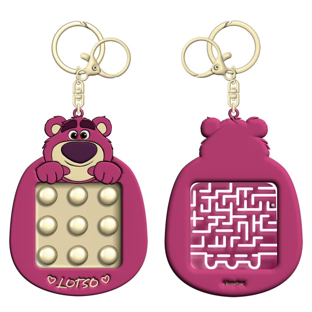 Toy Story klíčenka s bludištěm je malý, zábavný doplněk inspirovaný populární animovanou sérií Toy Story. Klíčenka má kulatý tvar a je vyrobena převážně z plastu, který je odolný a zároveň lehký, což usnadňuje její nošení na klíčích nebo batohu. Dominantní barvou je modrá, která je doplněna barevnými prvky a ilustracemi postaviček z filmu Toy Story, což jasně identifikuje její tematické zaměření. Hlavní atrakcí této klíčenky je zabudované bludiště, které je součástí přední části produktu. Bludiště je vyrobeno z průhledného materiálu, což umožňuje snadno sledovat pohyb malé kovové kuličky uvnitř. Kulička musí být pomocí naklánění klíčenky dovedena do cíle, což nabízí jednoduchou, ale zábavnou hru na procvičení trpělivosti a jemné motoriky. Toto interaktivní prvku dělá z klíčenky nejen praktický předmět, ale také drobnou hračku. Klíčenka je určena především dětem a fanouškům značky Toy Story, a to nejen díky své funkčnosti, ale také díky výraznému motivu a kvalitnímu provedení. Rozměry klíčenky jsou kompaktní, což ji umožňuje snadné přenášení a využití jako doplněk k batohu, peněžence či klíčům. Tento produkt spadá do kategorie merch a licenčních dárků a je zařazen do skupiny ostatních hraček, což odpovídá jeho charakteru jako malého, zábavného předmětu s tematickou licencí. Celkově Toy Story klíčenka s bludištěm představuje kombinaci praktického využití a zábavy. Její barevný design a tematické zpracování dobře odpovídají požadavkům na licenční produkty pro děti a sběratele. Díky jednoduchému, ale funkčnímu designu může sloužit jako originální doplněk pro fanoušky Toy Story všech věkových kategorií.