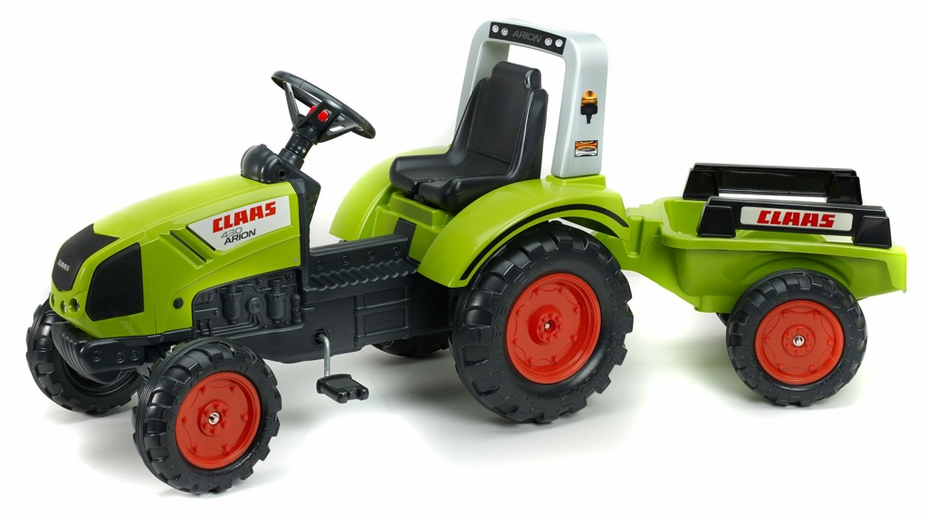 Traktor šlapací Claas Arion 430 s valníkem zelený a otočným sedadlem. Z vysoce odolného a kvalitního plastu. Velikost 160×53×66 cm Věk 3+. Všechny traktory Falk jsou testovány na 50kg – dle požadavků evropských norem. Vyrobeno ve Francii.