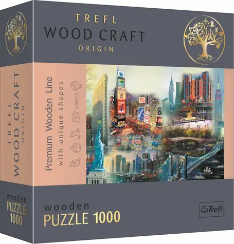 Trefl Wood Craft Origin - Puzzle - Koláž New York / 1000 dílků / 51.9 x 37.5 cm / věk 14+