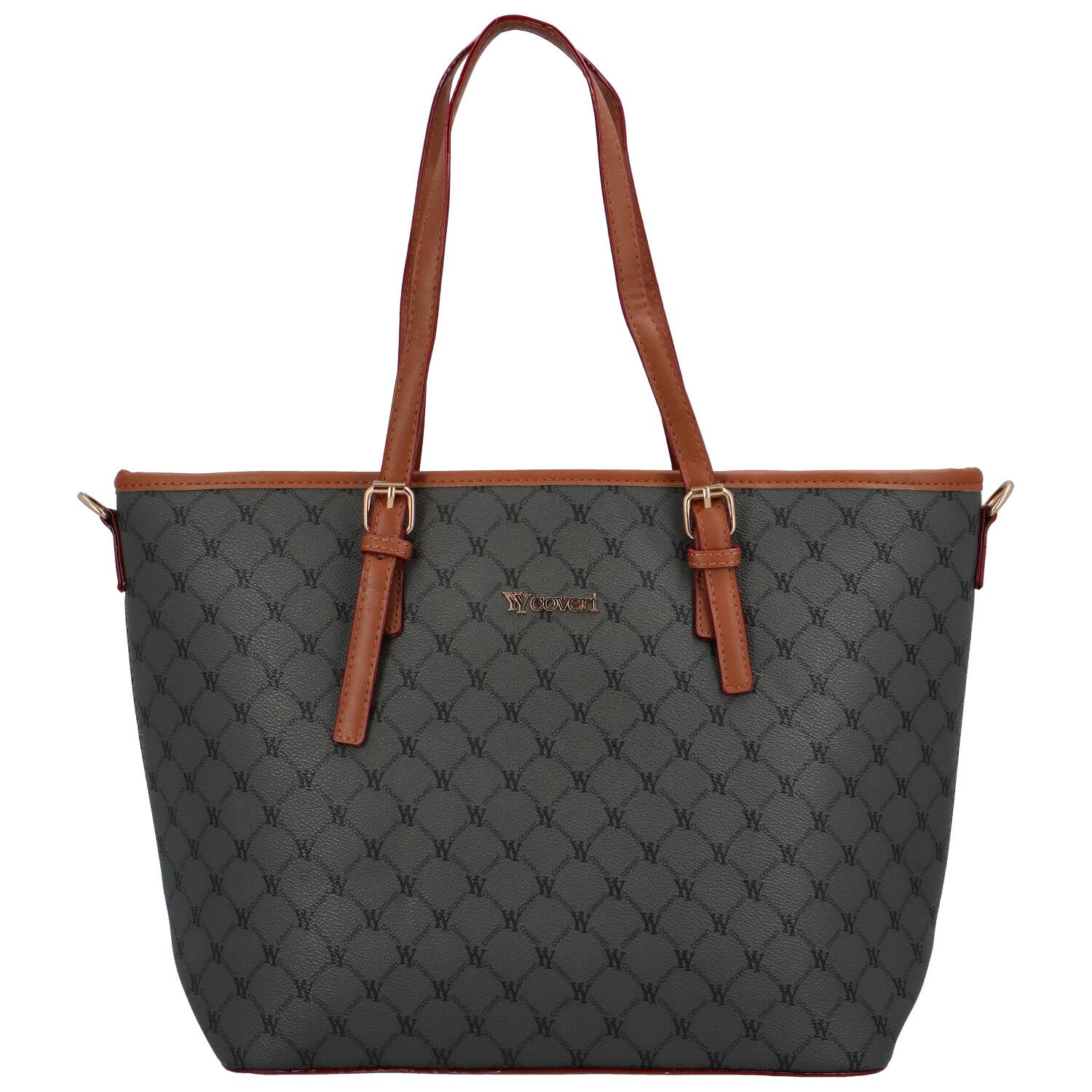 Příjemná velká kabelka ve stylu shopper. Doprovodí vás při brouzdáním v obchodech, nebo na pochůzkách městem.Jemný potisk a barevné kombinace vytvařejí příjemný výsledek, který je umocněn kováním ve zlaté barvě.