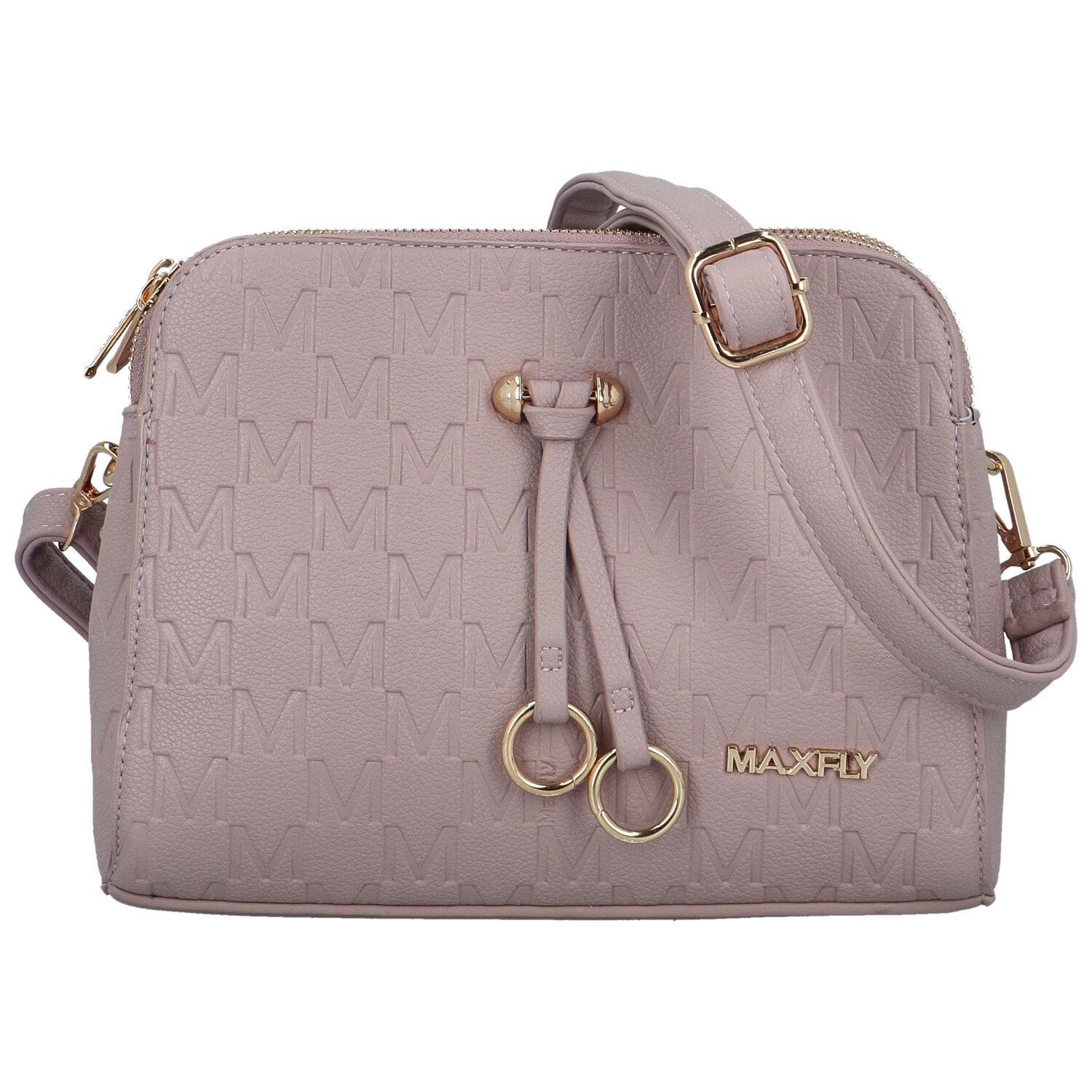 Kabelka má krásný design. Na přední straně ozdoba se zlatým kováním a logo značky. V kožence je jemně vytlačeno velké písmeno 'M'. Crossbody má hned tři kapsy uzavíratelné na zip do kterých si vše krásně rozvrhnete a budete mít po ruce všechny svoje osobní věci.