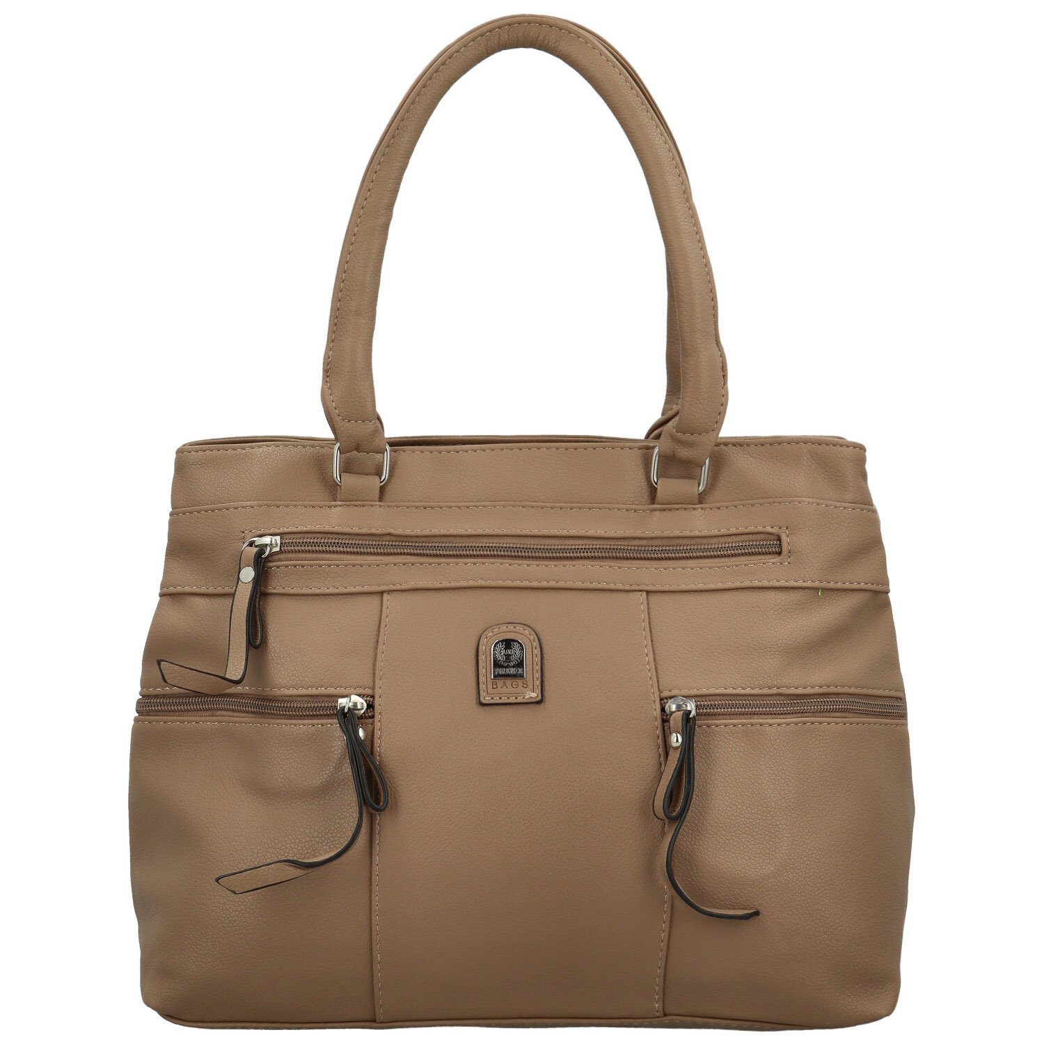 Hlavní část kabelky tvoří dvě samostatné kapsy na zip, uvnitř pak najdete kapsičky v podšívce pro lepší organizaci. Přední část je designově řešená několika zipovými kapsami, které nejen zdobí, ale zároveň nabízí prostor pro drobnosti. Na zadní straně se nachází praktická kapsa na zip.