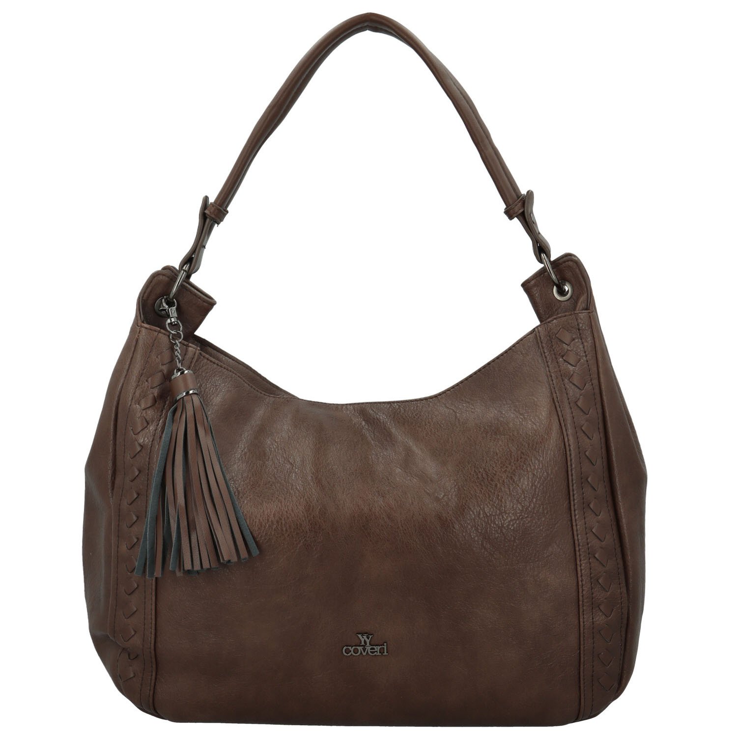 Její měkký koženkový povrch zdobí na přední straně elegantní pruh s dekorativním proplétáním, který jí dodává ručně vyrobený nádech. Příjemným detailem je i výrazný střapec zavěšený na kovovém kroužku, jenž kabelce propůjčuje hravost a ležérní šmrnc.