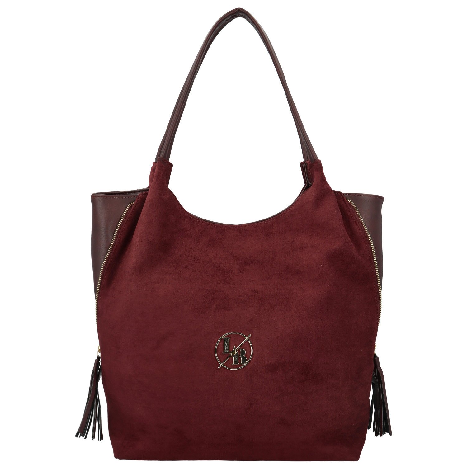 Trendy dámská koženková kabelka na rameno LB Marnie, vínová/semiš