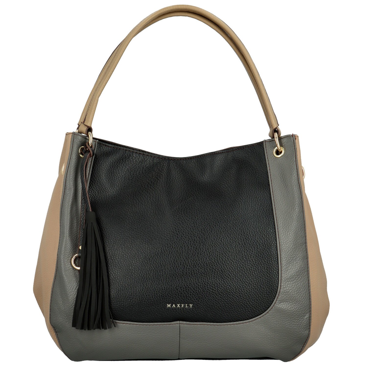 Trendy dámská koženková kabelka na rameno MaxFly Tuvia, černá-béžová