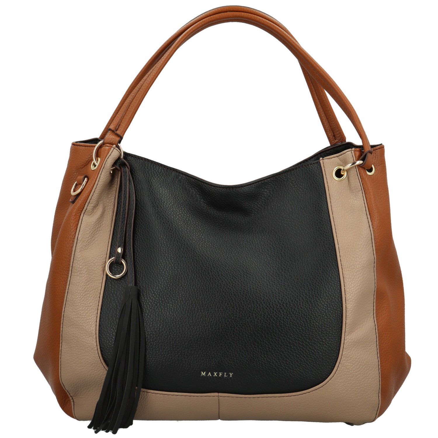 Trendy dámská koženková kabelka na rameno MaxFly Tuvia, černá-hnědá