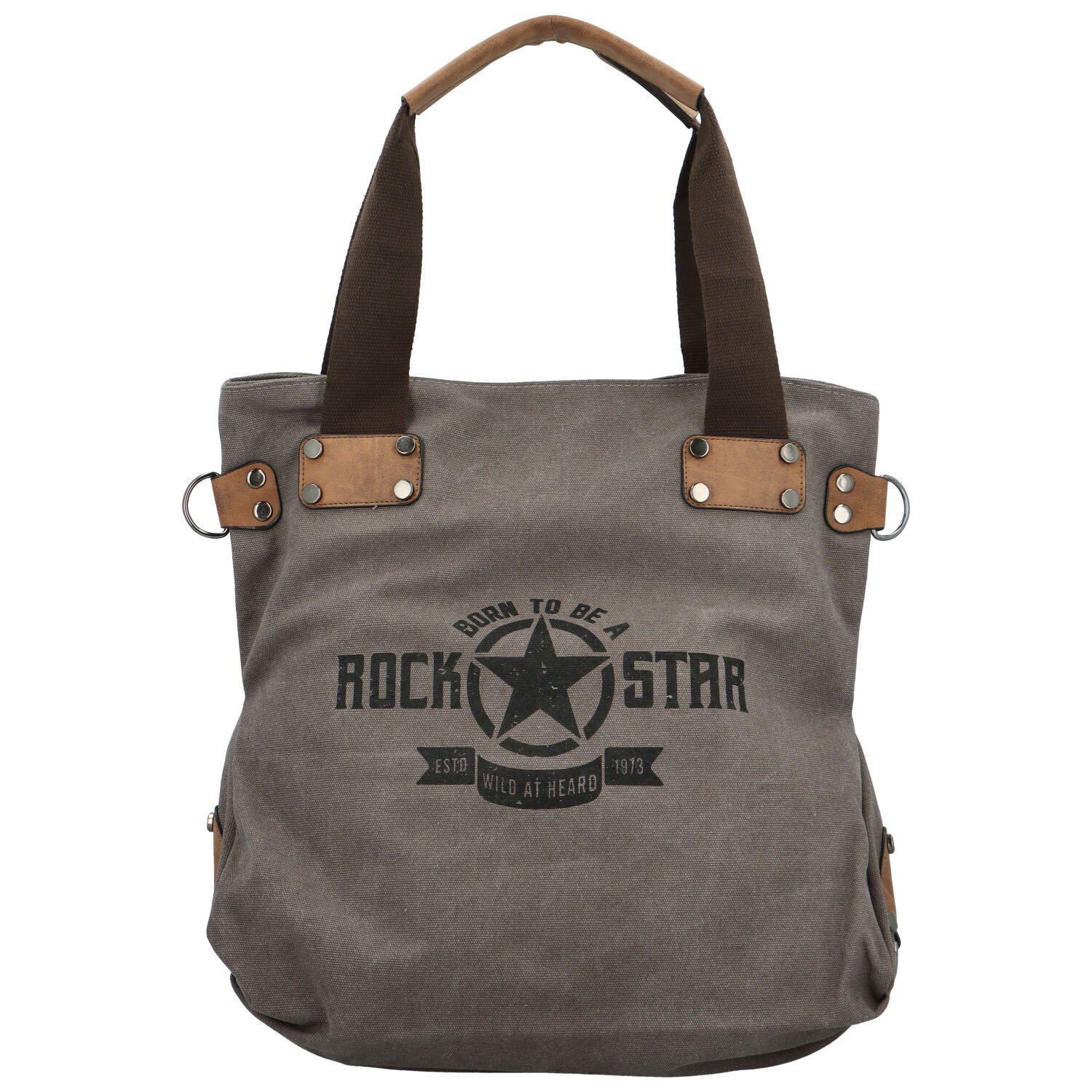 Odolná textilie a stylové nápisy zdobí tento praktický kousek. Koženkové doplňky v hnědé barvě vytvářejí příjemný kontrast. Pevná textilní ucha padnou do ruky.