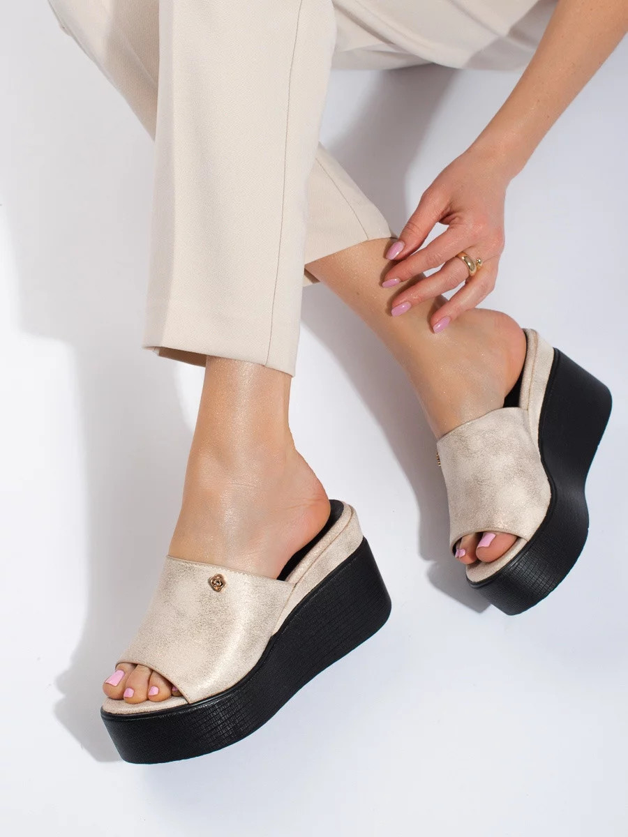 Trendy dámské nazouváky na klínku GD-FL1601 zlato-černé - Goodin 37